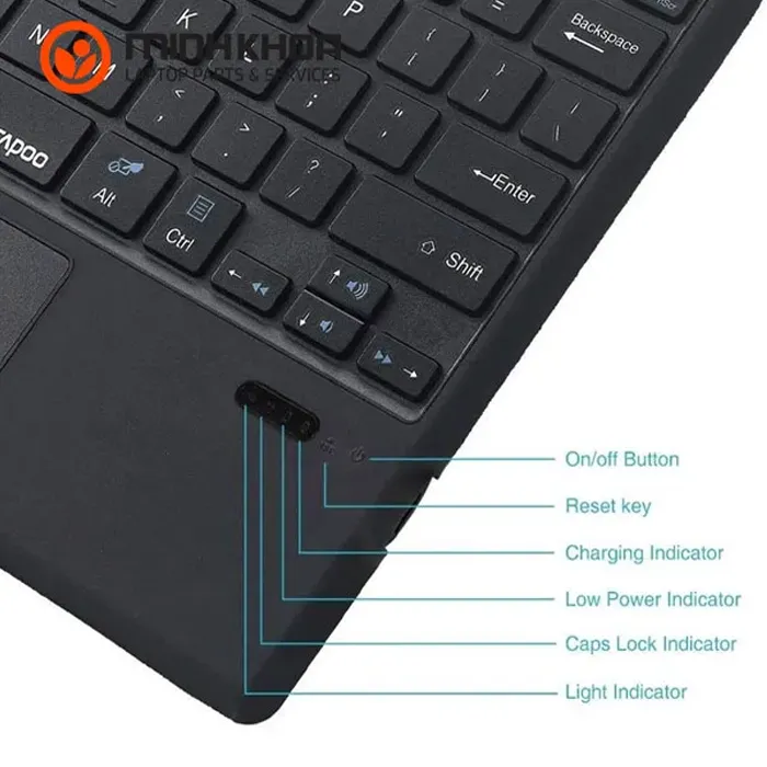 Lưu ý: Bàn phím được trang bị cổng sạc USB-C, khi dung lượng pin giảm cần kết nối với nguồn sạc, sản phẩm không nhận điện trực tiếp qua kết nối nam châm.