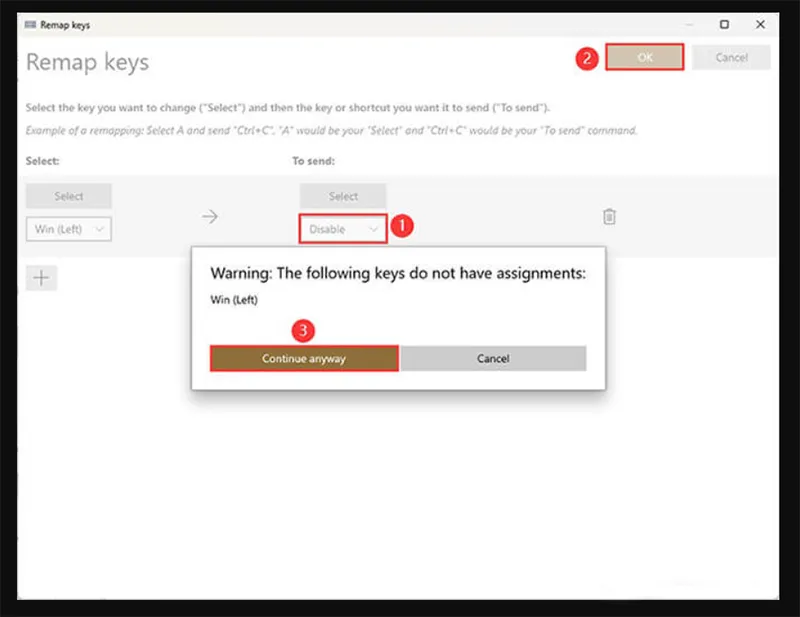 Cách này chỉ tắt các tổ hợp phím Windows, không tắt hoàn toàn phím đơn lẻ.
