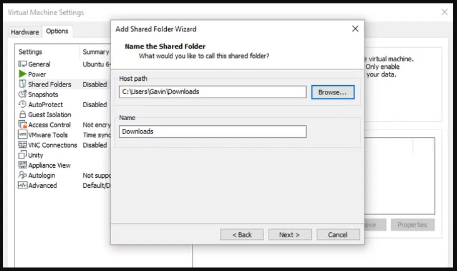 Bước 5: Chọn thư mục bạn cần chia sẻ với máy ảo