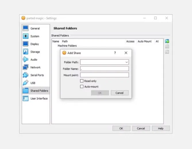 - (Không chọn Read-only nếu muốn ghi tệp từ VM ra máy thật)