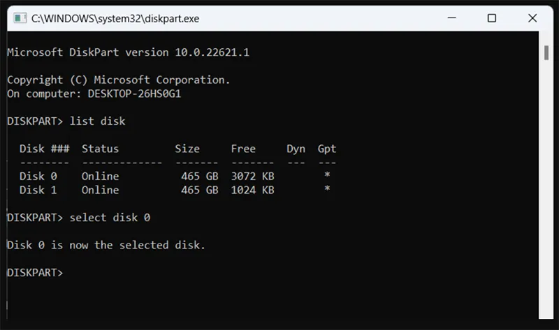 2.2 Sửa lỗi bằng Diskpart (Chuẩn UEFI – Khuyến nghị)