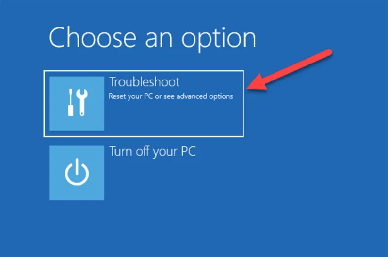 Mở Command Prompt: Repair your computer -> Troubleshoot -> Advanced options -> Command Prompt.